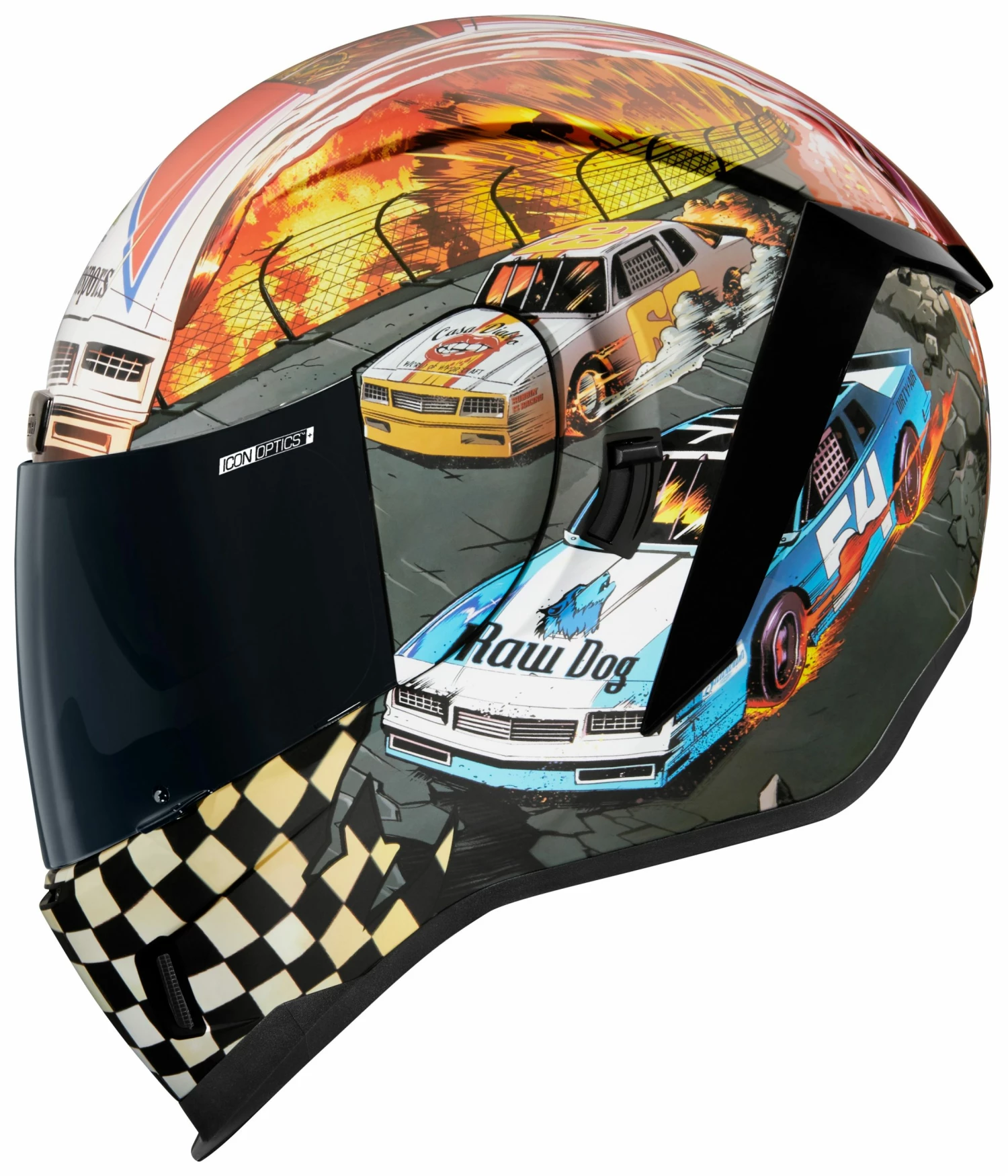 Together with the airflow channels formed in the EPS liner, the Hydradry moisture-wicking interior keeps your head dry on those hot Talladega nights, so stay loose out there and enjoy the fast times. A sculpted neck roll lets you move into and out of the tuck position without as much interference with your jacket, one less thing to distract you while you are riding. Speaker pockets make it easy to install Icon’s R.A.U. Bluetooth Communicator so you can stay connected.
